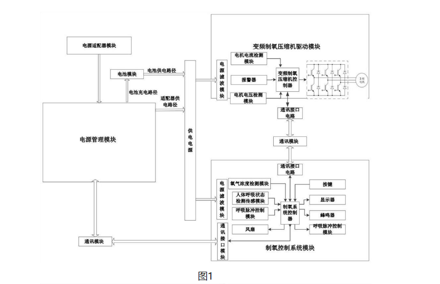 | 图1为本实用新型实施例的制氧机的结构框图; |